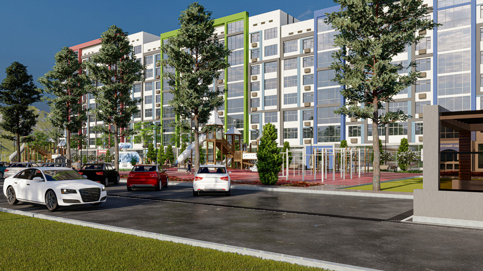 Дворы ЖК оснащены современными детскими площадками, а так же просторными беседками